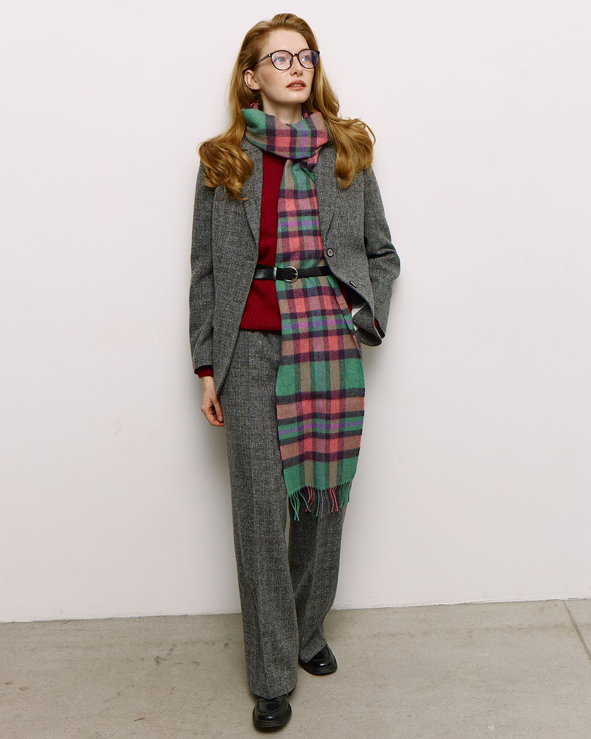 джемпер из шерсти ягнёнка Burgundy и ирландский шарф от John Hanly.