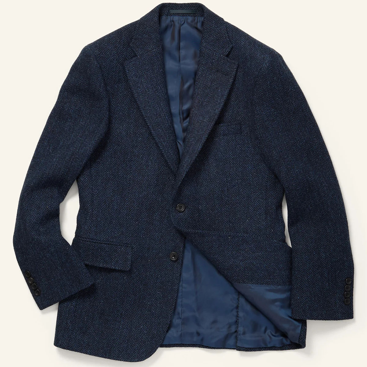 Шотландский твид в ёлочку в синем и чёрном тонах.