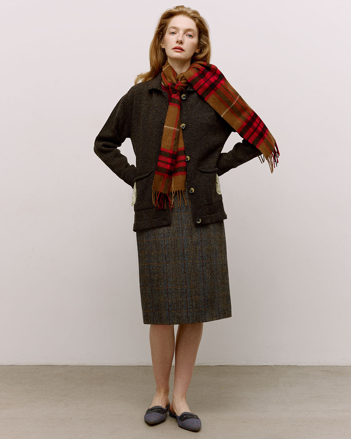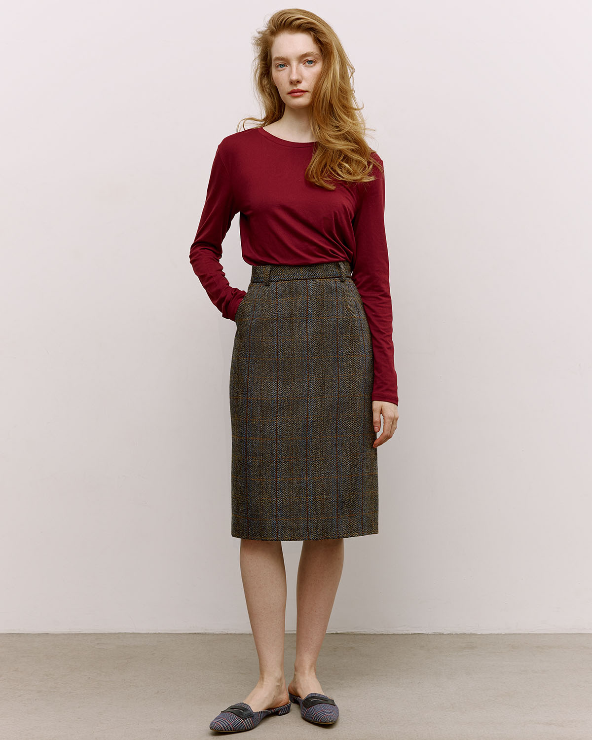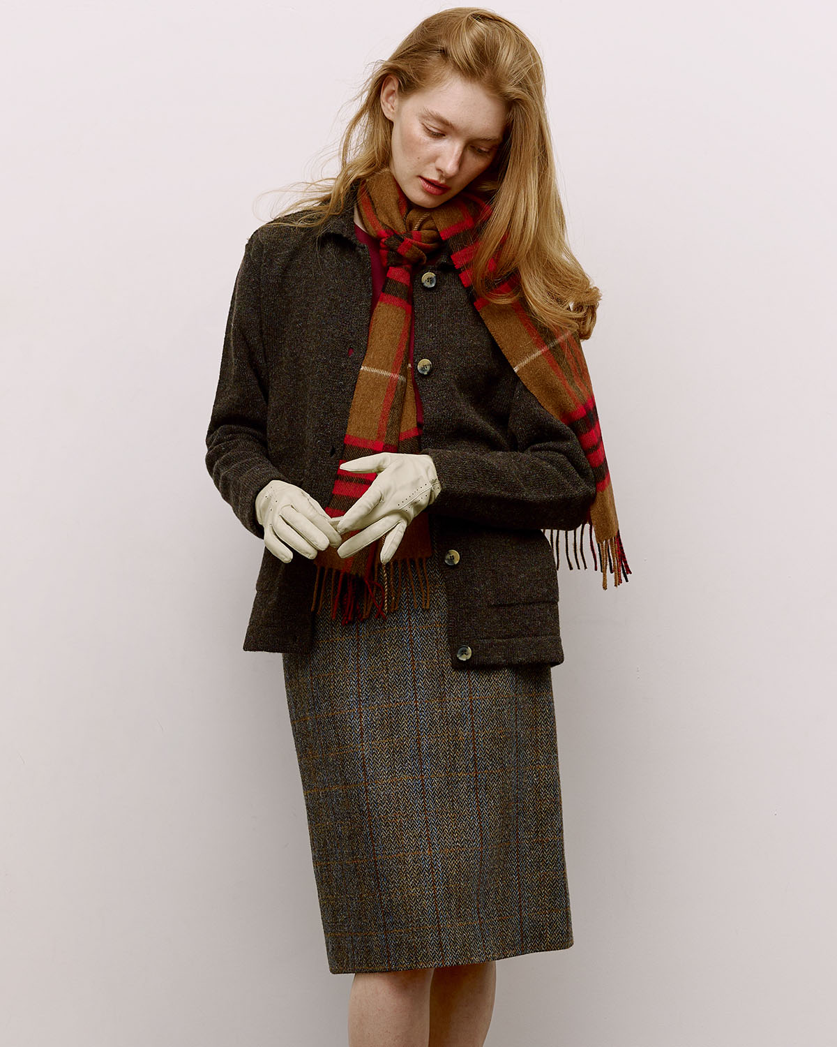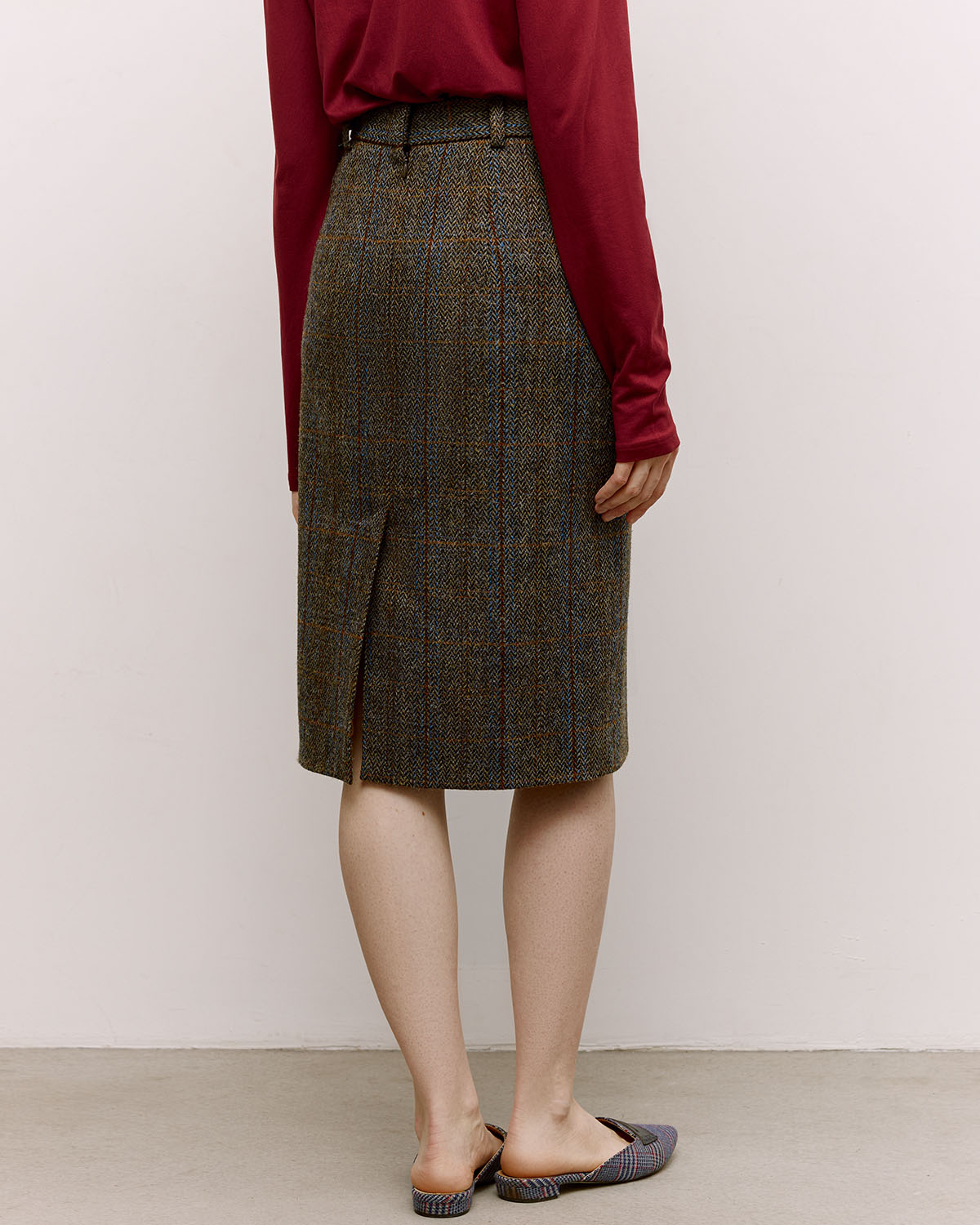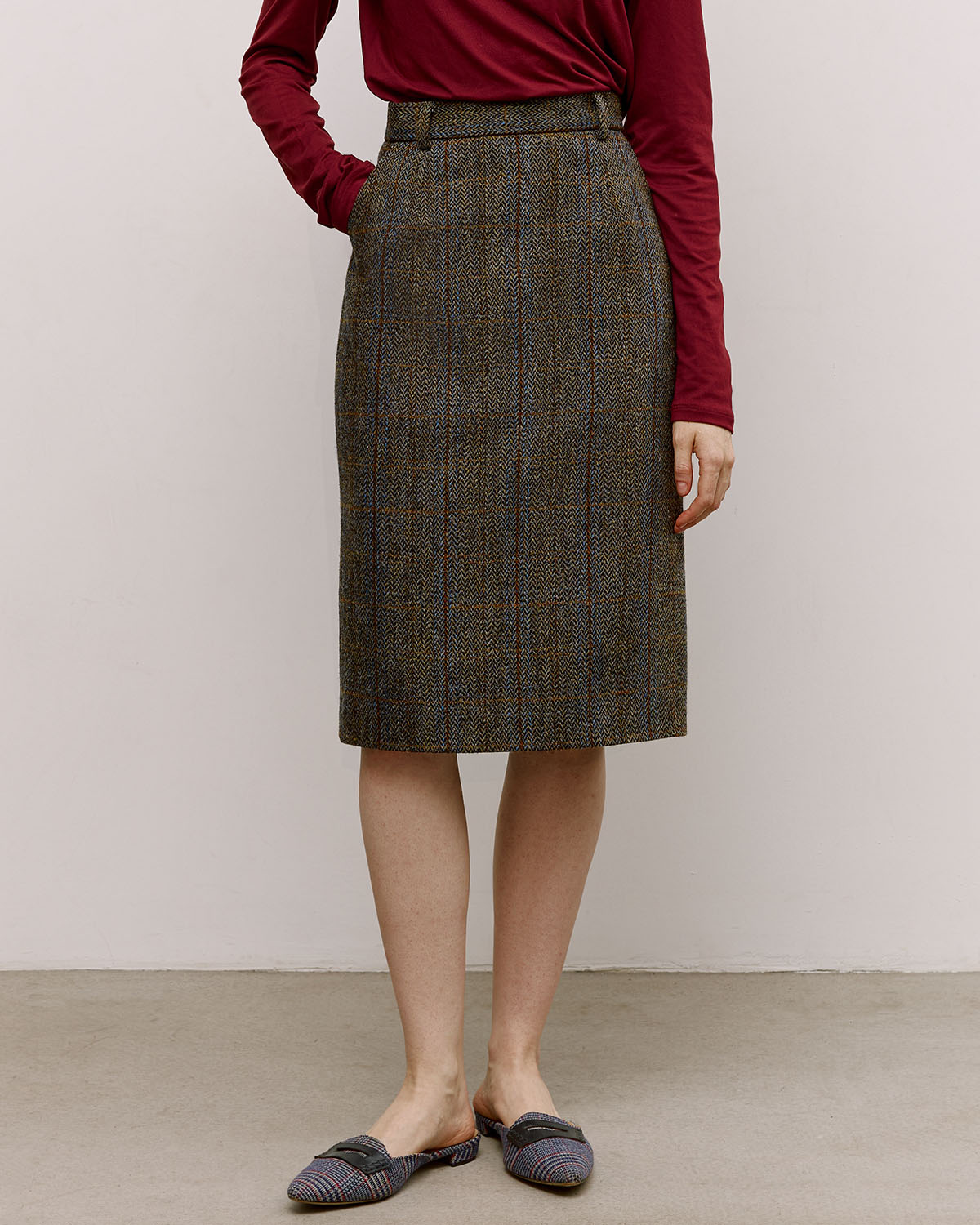 Прямая клетчатая юбка со шлицей из харрис твида (harris tweed), сотканного вручную на Внешних Гебридских островах в Шотландии. Задизайнена, сконструирована и сшита в Москве в рамках нашего сайд-проекта PUT IT ON.