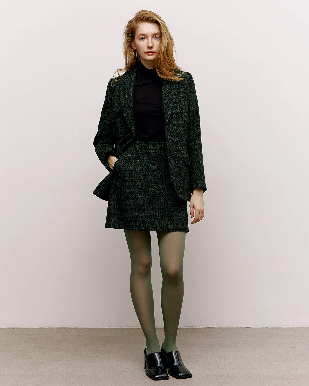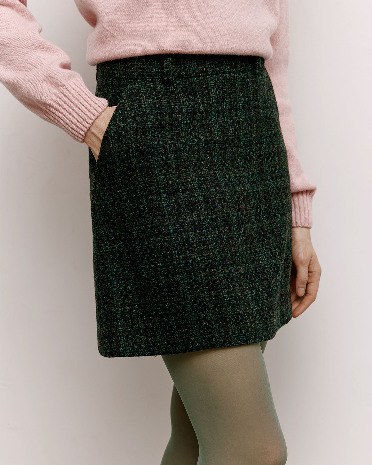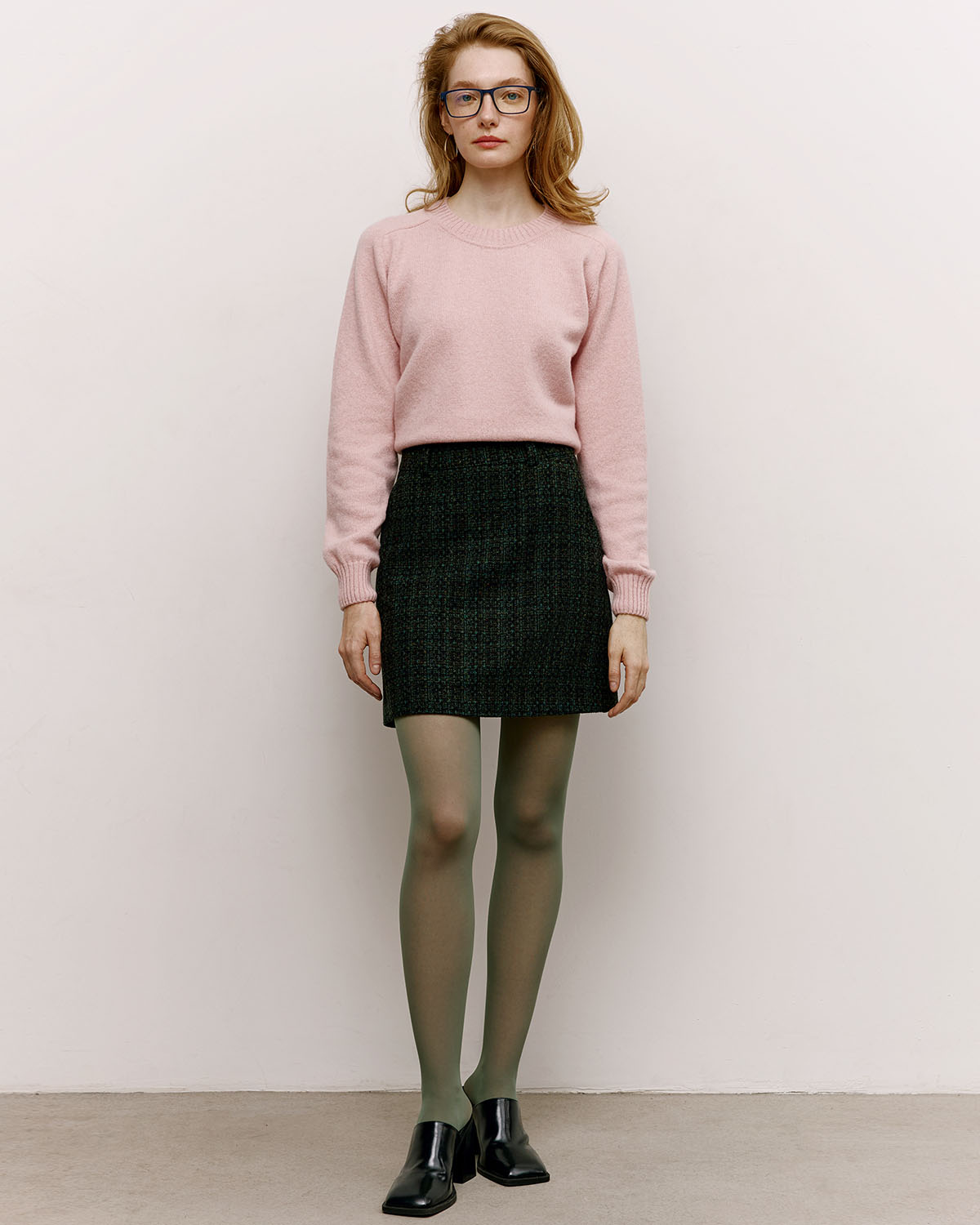 Рост модели на фото - 171 см. На модели размер S. На фото также представлен твидовый пиджак Emerald и женский джемпер из шерсти ягнёнка от Put It On.
