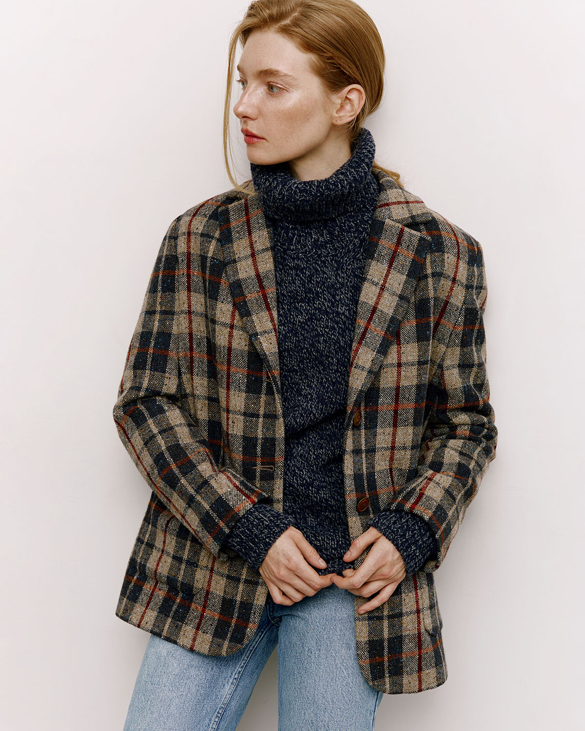 Твидовый пиджак Navy Grey Check