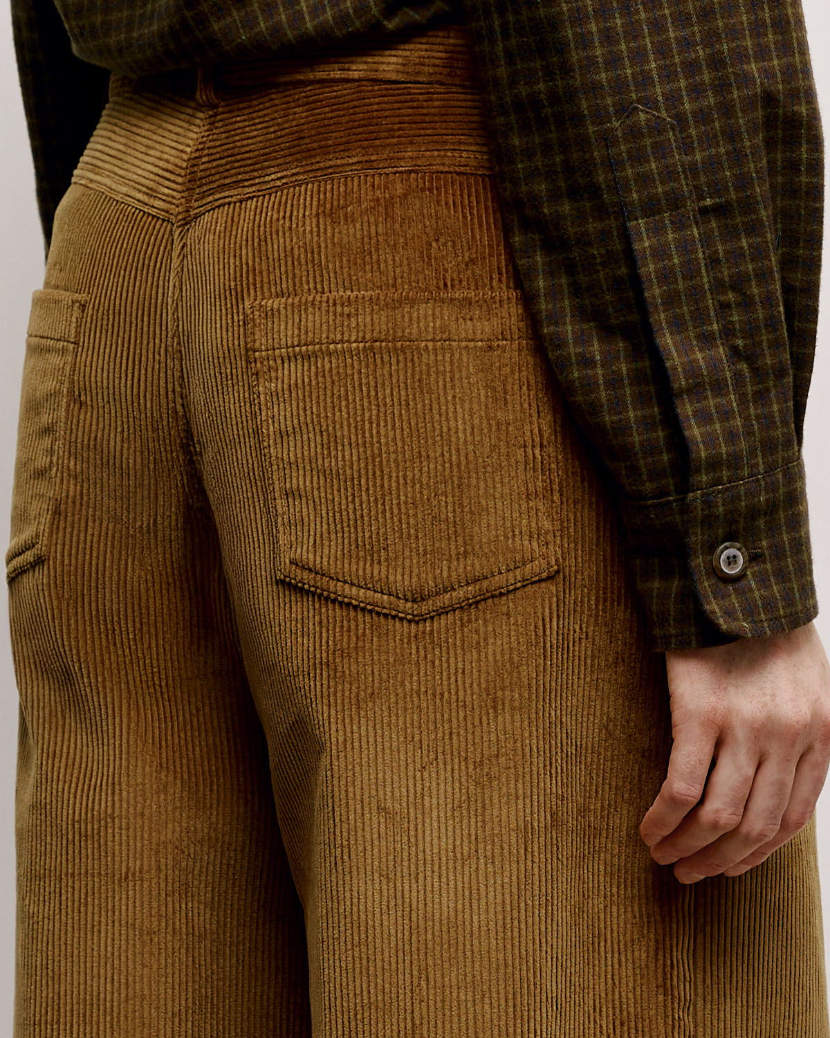 На фото также представлены женские брюки из японского вельвета песочного цвета. Модель ростом 171 см, размер S.