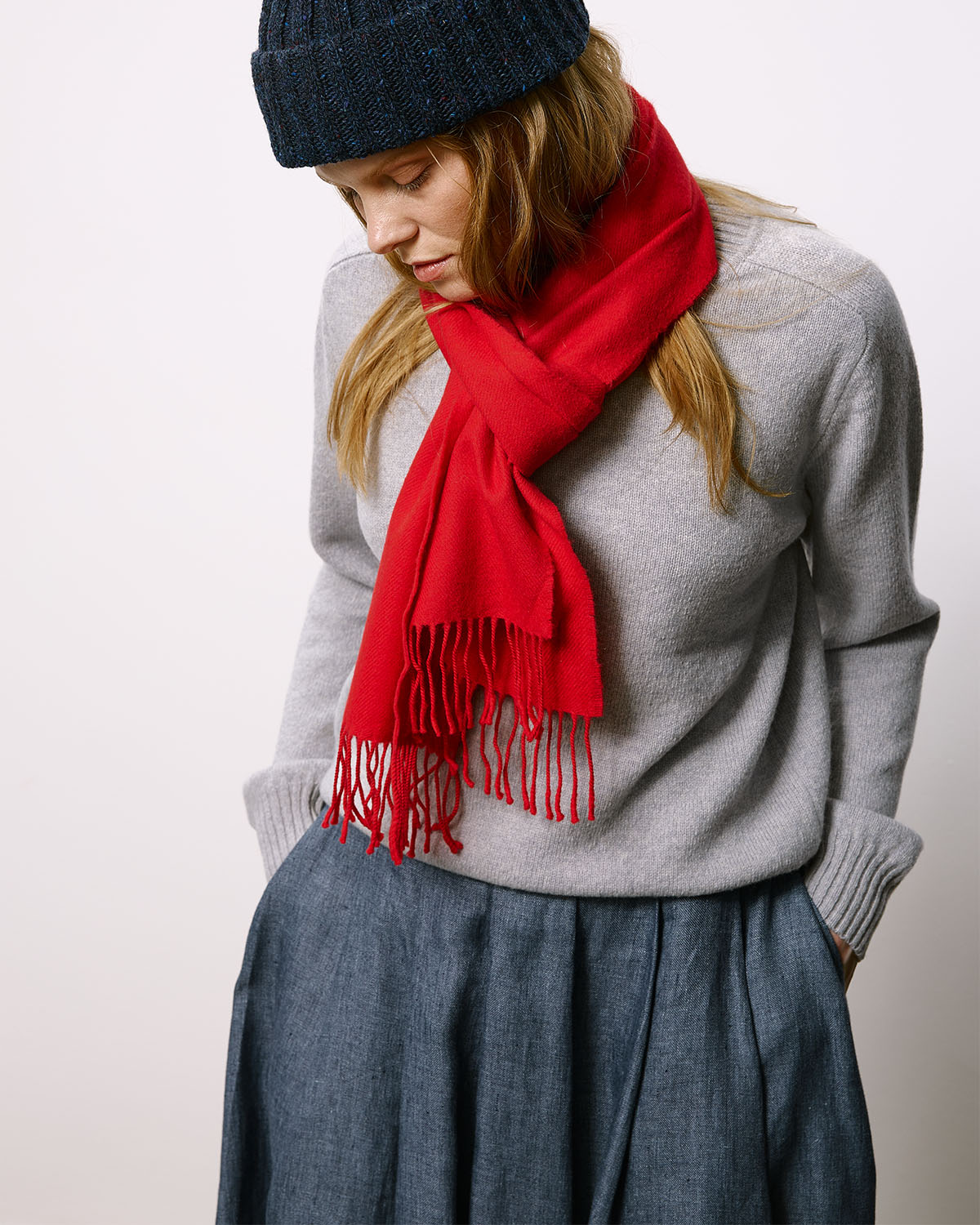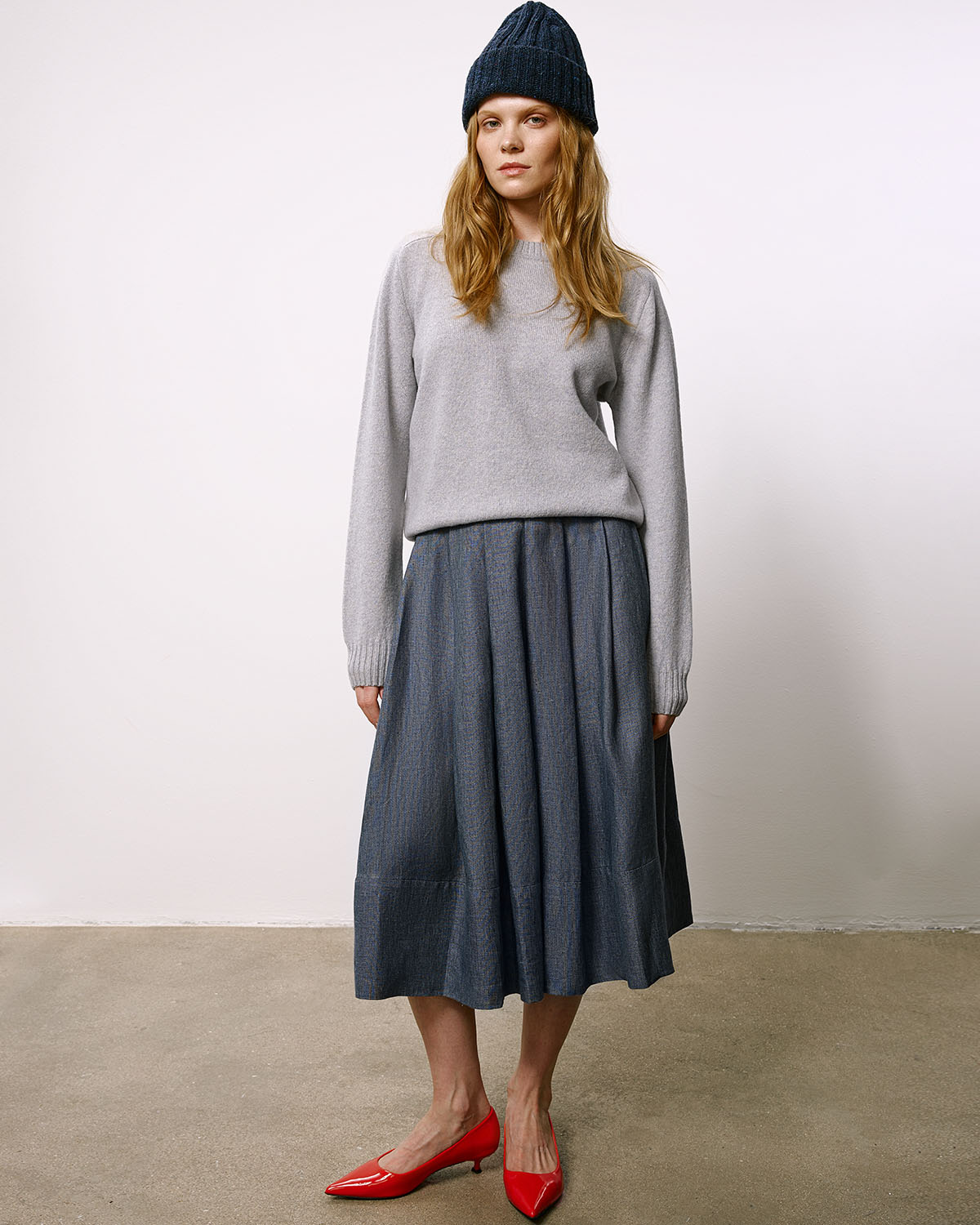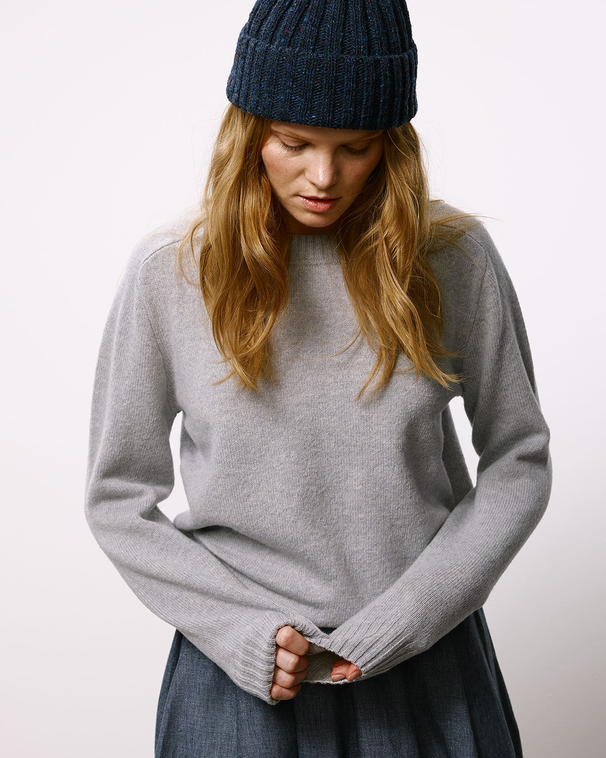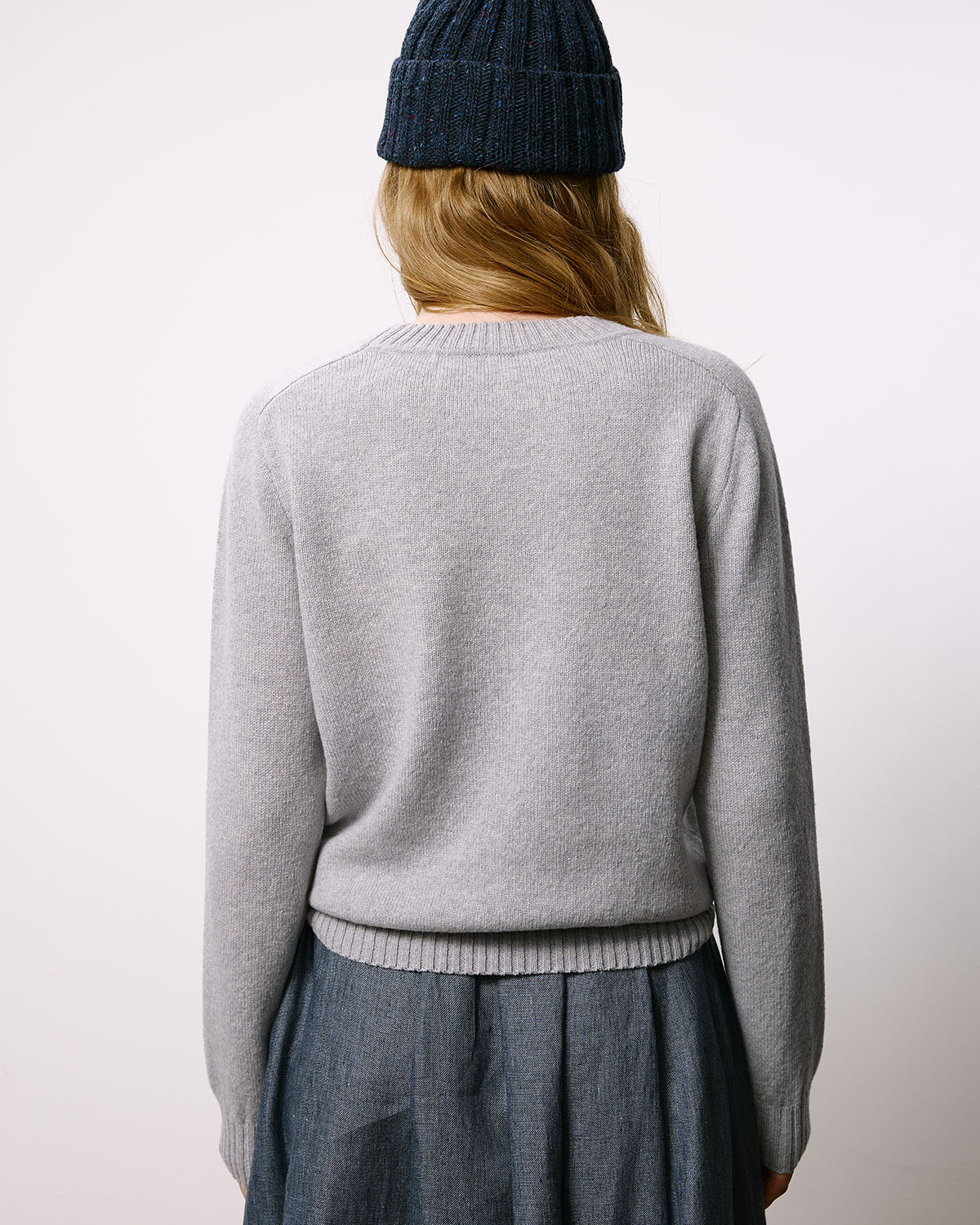 Классический базовый джемпер из светло-серой пряжи из нежной шерсти ягнёнка, изготовленной на одной из старейших фабрик Великобритании.