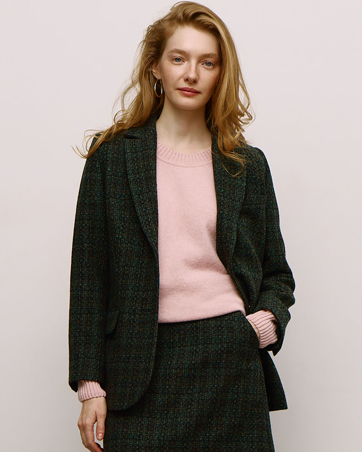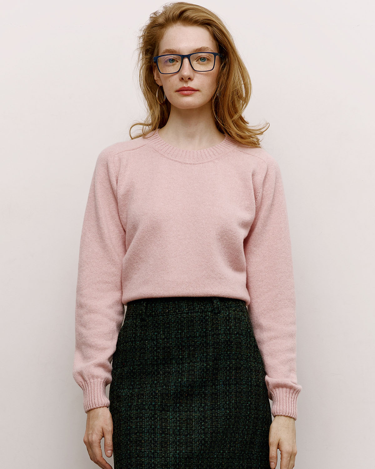 Классический базовый джемпер из пряжи нежно-розового цвета. Связан в Москве, пряжа изготовлена из очень мягкой натуральной шерсти ягнёнка на одной из старейших фабрик Великобритании.