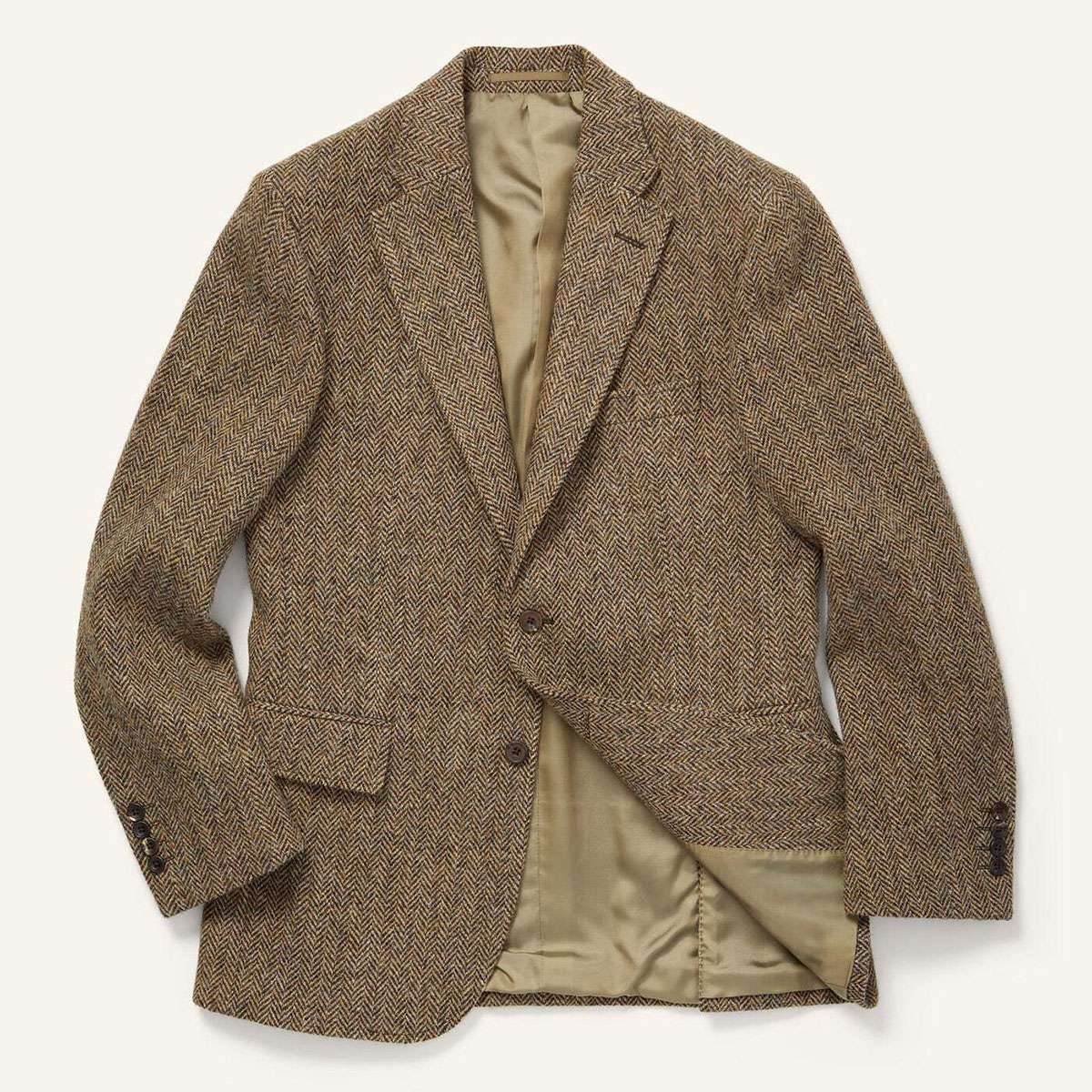 Шотландский твид в ёлочку в коричневых и зелёных тонах.
