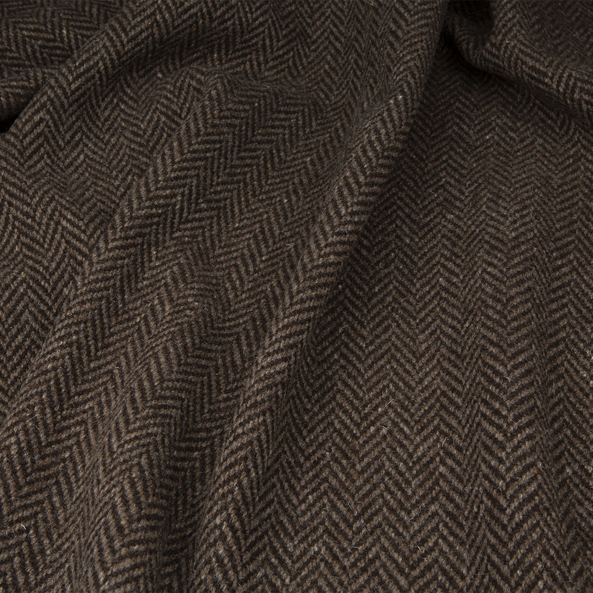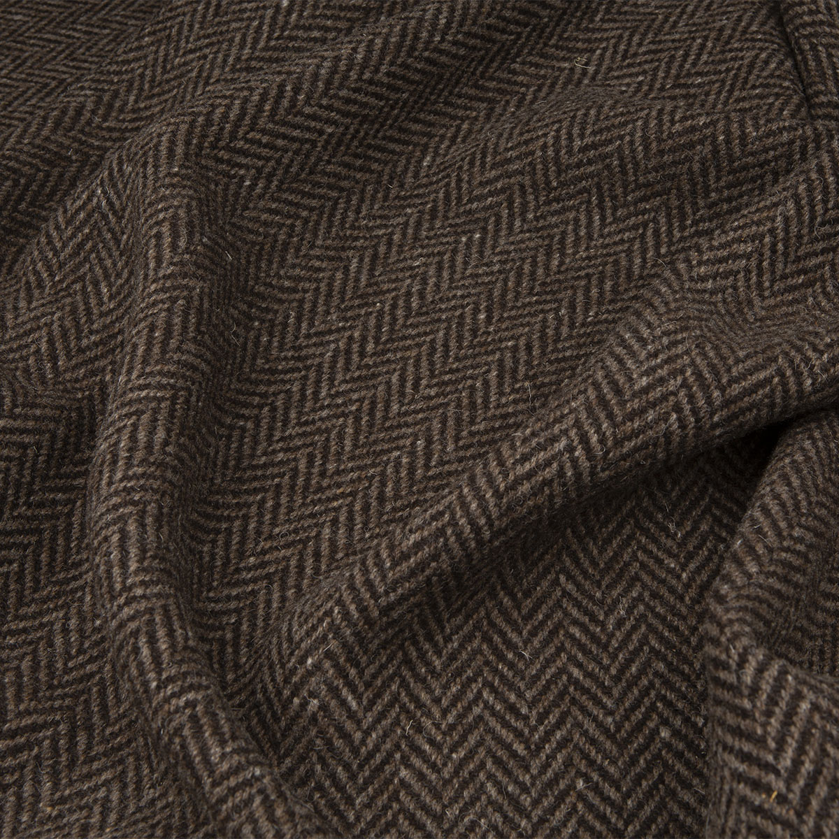 По-настоящему тёплый толстый пальтовый твид с ткацким узором "рыбья кость" в коричневых тонах. Изготовлен из натуральной неокрашенной шерсти британских овец, которая прошла тщательный отбор и сортировку по цветности. Эта уникальная ткань соткана на одной из старейших фабрик Великобритании и мире в целом - Marling & Evans, чья история началась еще в 1782 году.